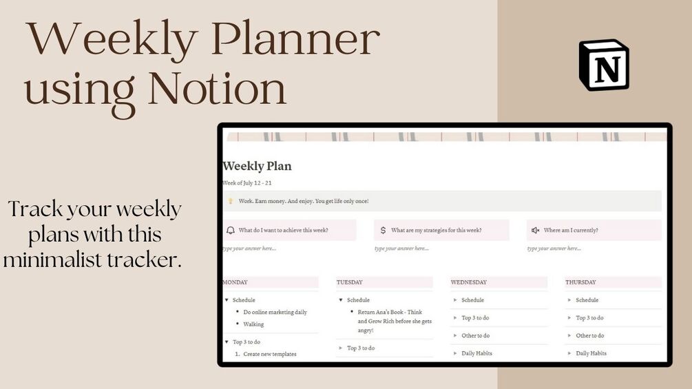 I know how hard it is to do everything in one day. One month can seem to be a little too far if you want your target to be achieved in a very short period of time. I created this minimalist Notion template that will help you get your work done in a week! Plan your weekly schedule in this minimalist yet powerful Notion template!