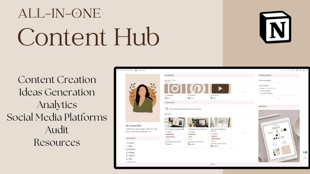 • Let's say goodbye to blank pages! This Notion template comes equipped with carefully crafted pre-made pages (Instagram, Youtube, TikTok, and more), providing you with a solid structure to kickstart your content writing. Whether you're a seasoned content creator or just starting, our templates provide a solid foundation to build upon!